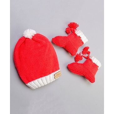 The Original Knit Pom Pom Decorated Cap With Booties - Red